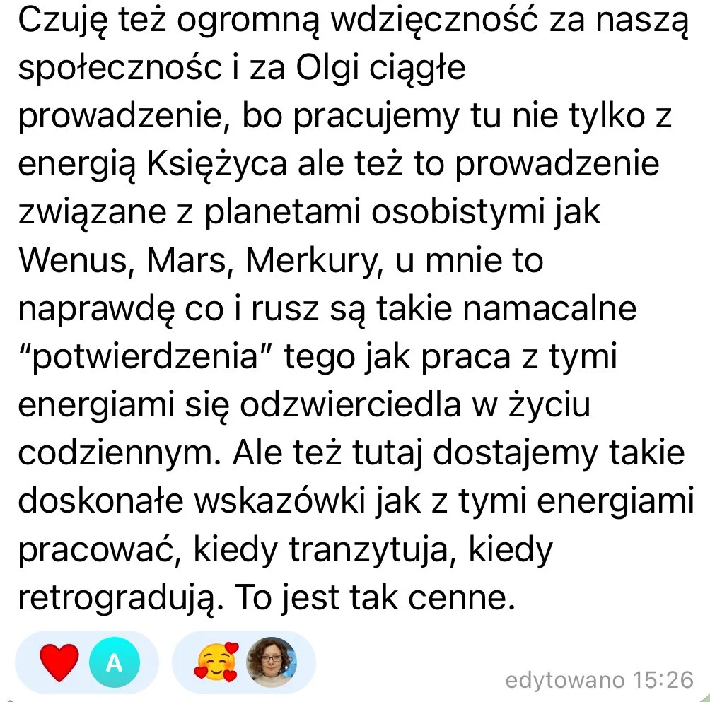 • otrzymasz ogólne astrologiczne prowadzenie dotyczące aktualnych tranzytów w formie nagrań głosowych w grupie Telegram, możesz również wykupić jedynie astroprowadzenie TUTAJ