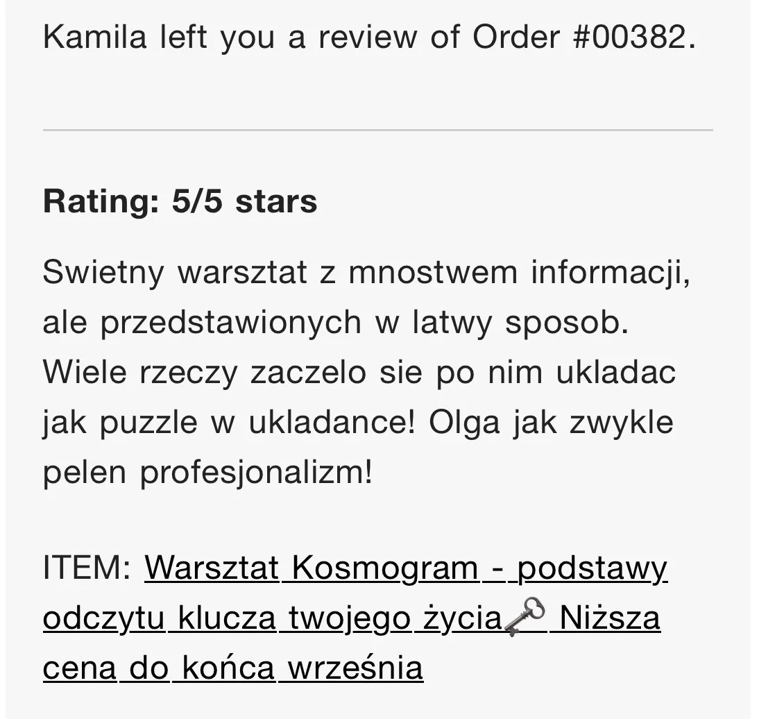 Po dokonaniu płatności otrzymasz ode mnie email powitalny z instrukcją oraz dostępem do platformy kursu.
